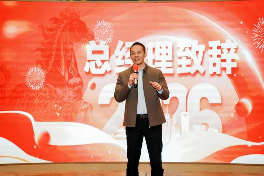 晚宴在歌舞表演与幸运抽奖中落下帷幕。总裁翁建宁携高管团队举杯祝愿:"愿我们在2026年继续携手并肩,以智慧点亮前路,以实干铸就辉煌!"