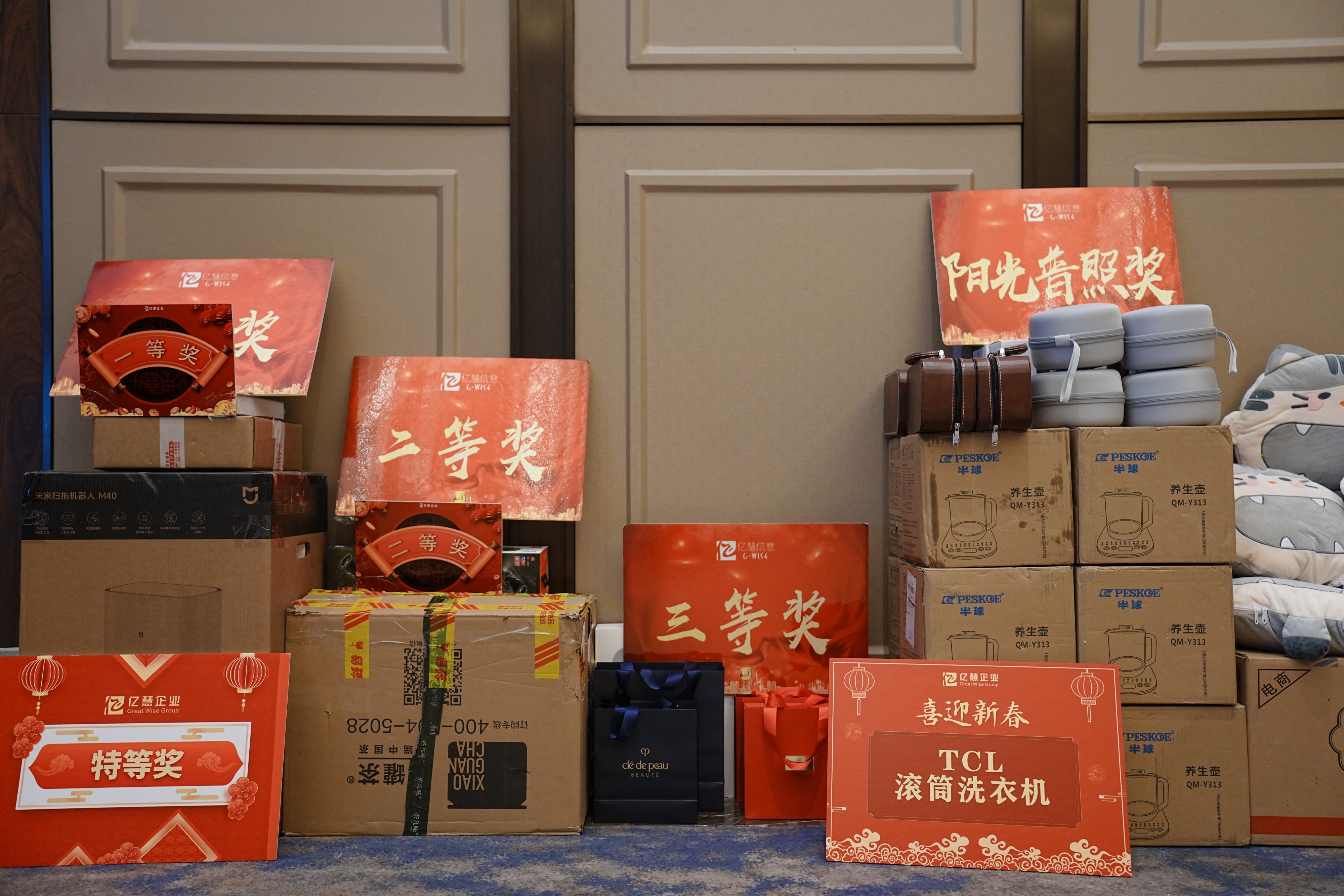 年会的抽奖环节将现场气氛推向了高潮。公司准备了丰厚的奖品,包括ipad平板电脑、智能手表、小米智能家居设备等,让每一位员工都有机会收获惊喜。随着一个个奖项的揭晓,现场欢呼声、掌声不断,大家纷纷为幸运儿送上祝福。抽奖环节不仅为年会增添了欢乐气氛,也让员工们感受到了公司的关怀与温暖。